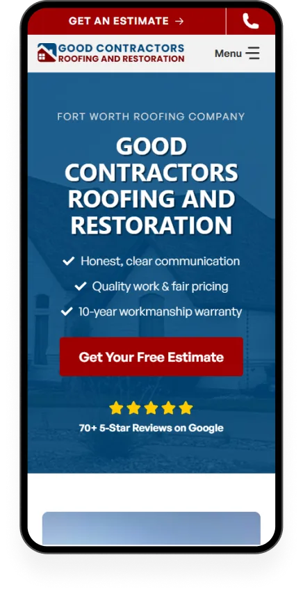Most roofing searches happen on a phone. We build for that first.